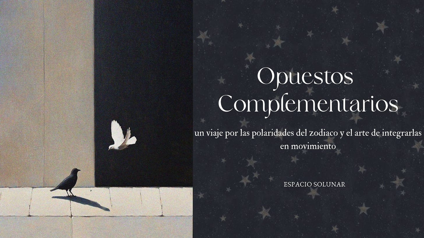Les quiero compartir algunas cosas sobre lo allí expuesto, reflexiones en torno a los Opuestos Complementarios, en la astrología y en la vida. Ya saben, si se animan a ver la clase completa el camino es por acá.